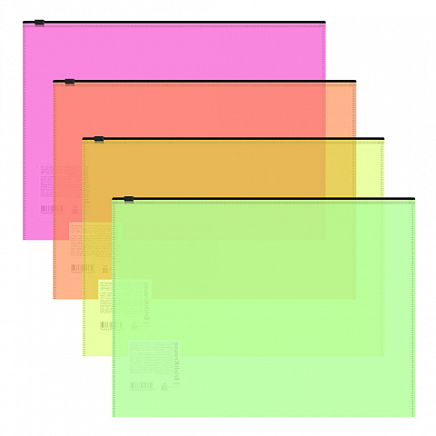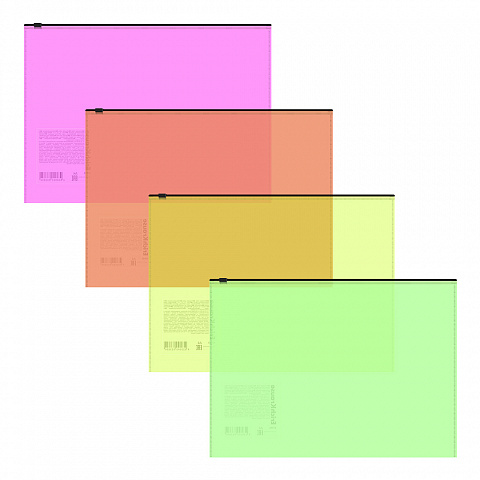 Zip-пакет пластиковый ErichKrause Fizzy Neon, A4, полупрозрачный, ассорти (в пакете по 12 шт.) |