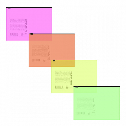 Zip-пакет пластиковый ErichKrause Fizzy Neon, A4, полупрозрачный, ассорти (в пакете по 12 шт.)