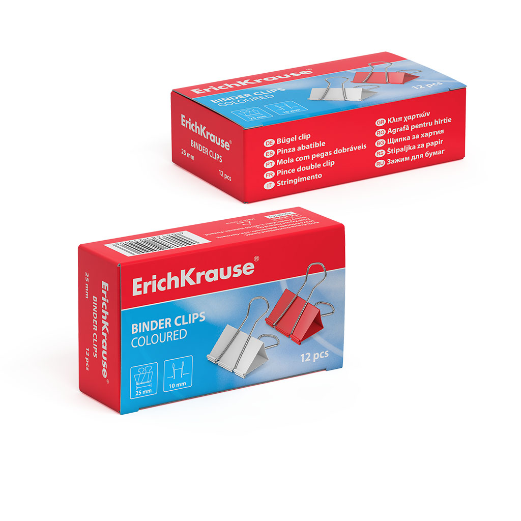 Зажимы для бумаг ErichKrause Classic, 25мм, ассорти (коробка 12 шт.) |