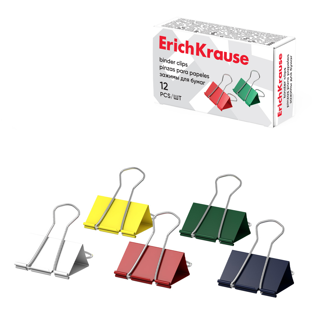 Зажимы для бумаг ErichKrause Classic, 25мм, ассорти (коробка 12 шт.)