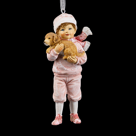 Милый мальчик с собачкой выполнен в ретро-стиле. Украшение отличается нежным розовым цветом и тонко прорисованными деталями. Изделие является относительно тяжелым, предпочтительно использование на искусственной елке. Групповая упаковка предназначена только для безопасной транспортировки и хранения. |