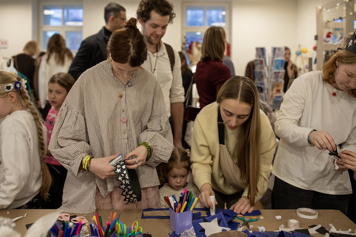 В рамках мастер-классов гости фестиваля создавали головные уборы, аксессуары, короны, воротники, манжеты и бумажные цветы из цветной бумаги ErichKrause Jolly Friends, а также работали над зин-коллажем «Итоги года» и коллажем «Снежники».