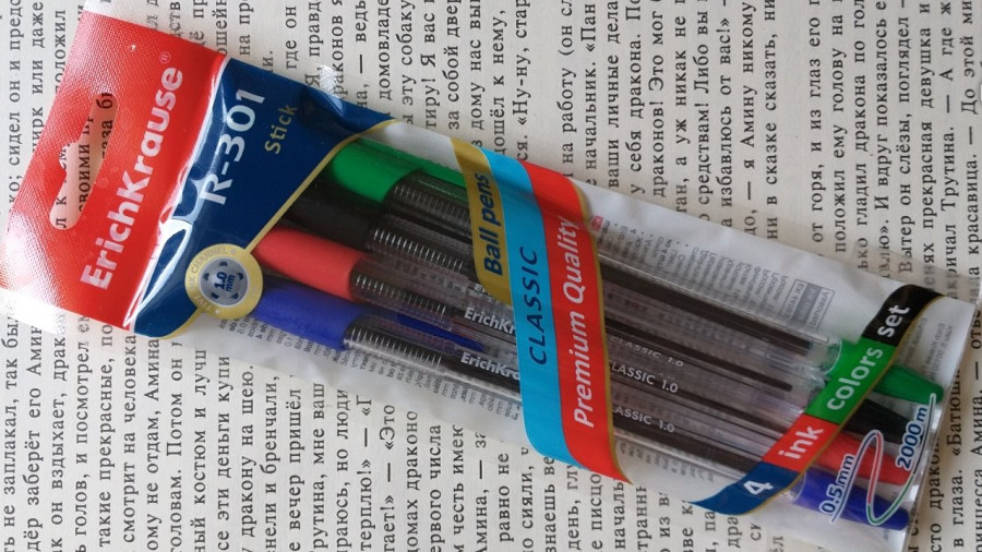 Моё очередное приобретение - Ручка шариковая ErichKrause R-301 Classic Stick 1.0. Цвета - синий, красный, зелёный, чёрный. Упаковка из 4 штук.