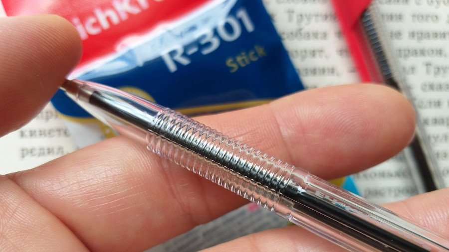 Корпус шестигранный с эмблемой логотипа компании. У основания имеется специальная грип-зона, напоминающая лесенку. Это необходимо для удобной фиксации ручки в руке, чтобы не скользила, в частности, в детских ручёнках.