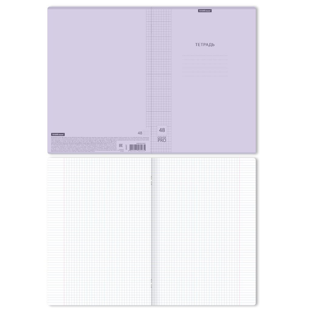 Notebook 48 sheets ErichKrause, Classic CoverPro Pastel, A4, lilak, squared, plastic cover |