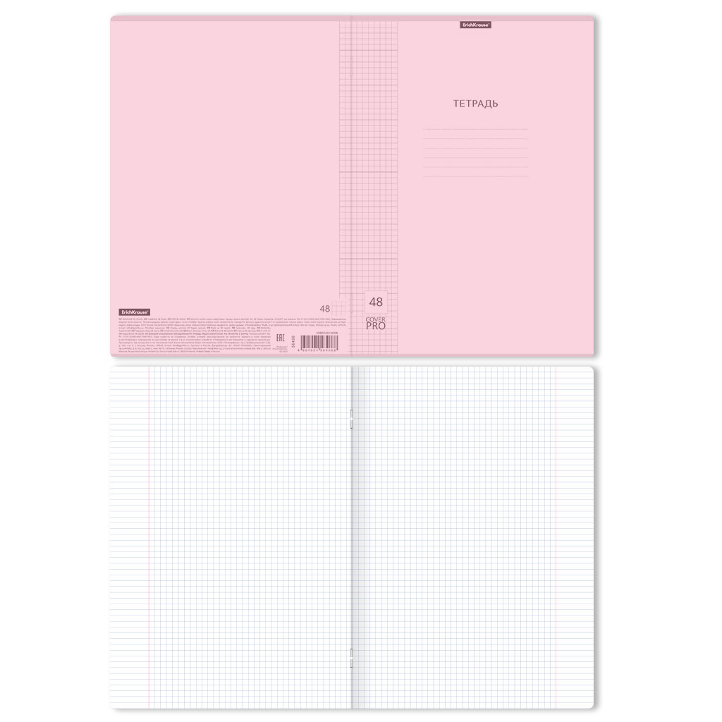 Notebook 48 sheets ErichKrause, Classic CoverPro Pastel, A4, pink, squared, plastic cover |
