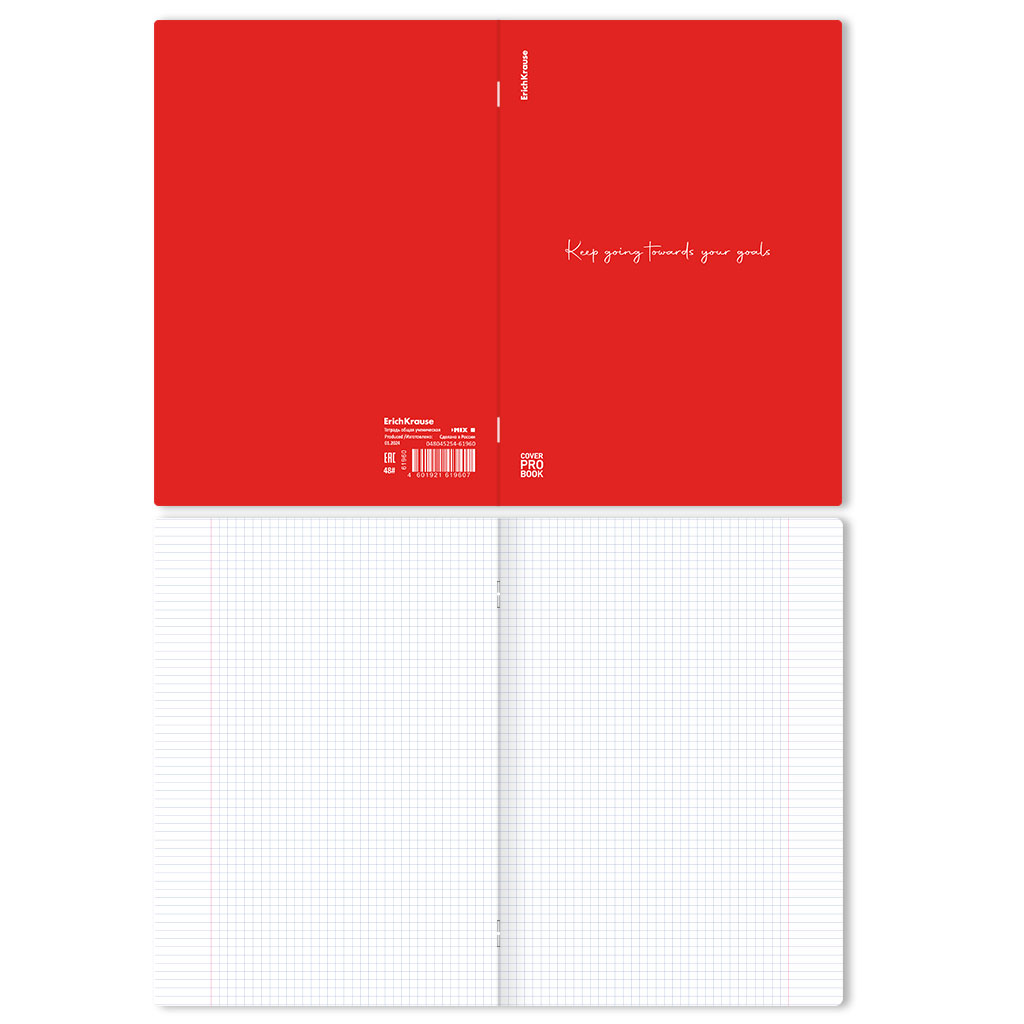 Stapled notebook 48 sheets ErichKrause CoverProBook Words, A4, squared, plastic cover, red |