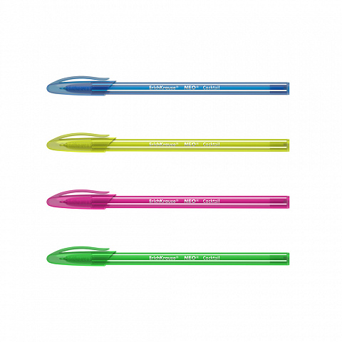 Set of 4 ballpoint pens ErichKrause Neo® Stick Cocktail 0.7, Super Glide Technology, ink color: blue (in polybag) |