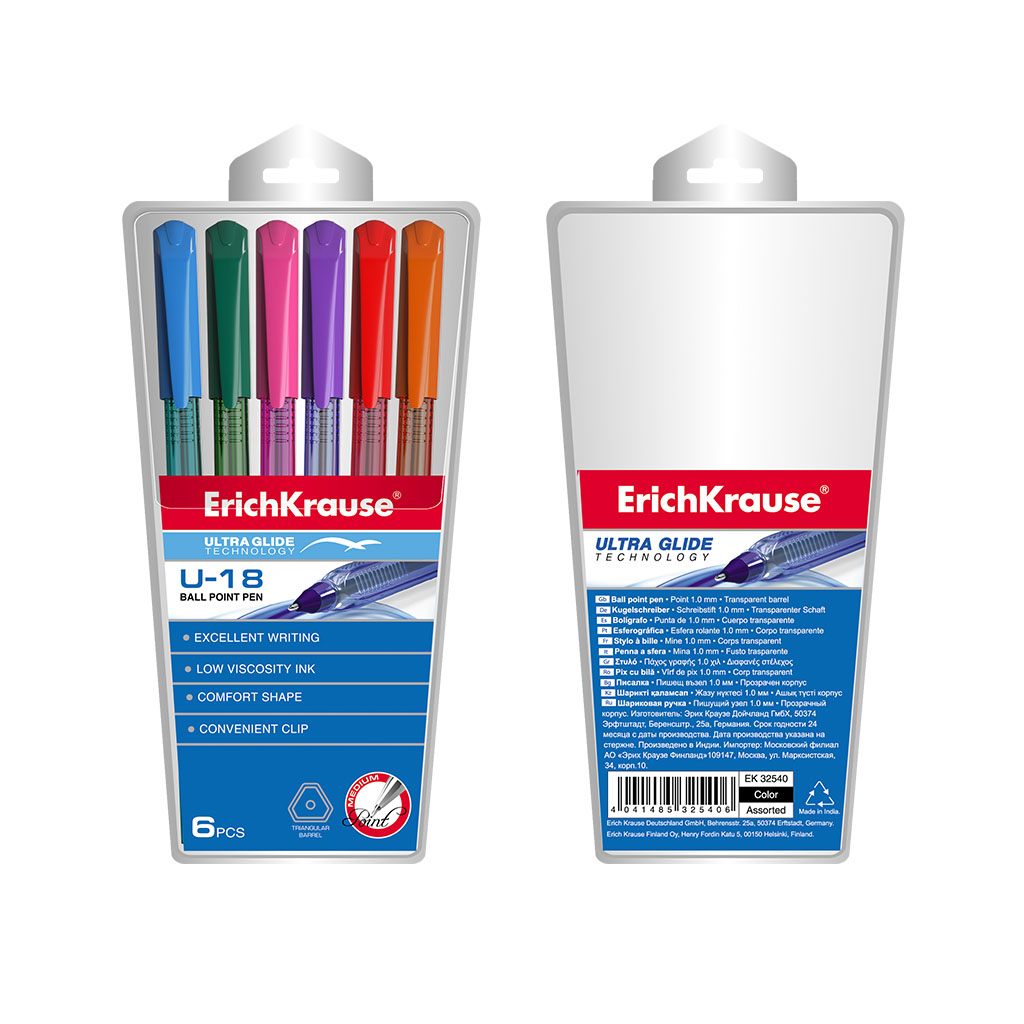Ballpoint pen ErichKrause® U-18, Ultra Glide Technology (pouch 6 pcs.)