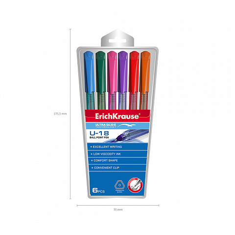 Ballpoint pen ErichKrause® U-18, Ultra Glide Technology (pouch 6 pcs.) |