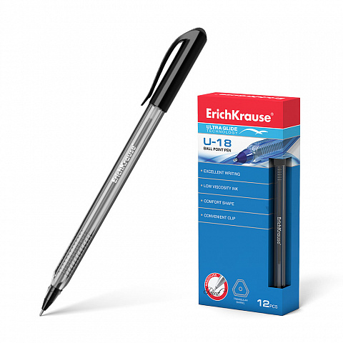 Ballpoint pen ErichKrause® U-18, Ultra Glide Technology, ink color: black (box 12 pcs.) |