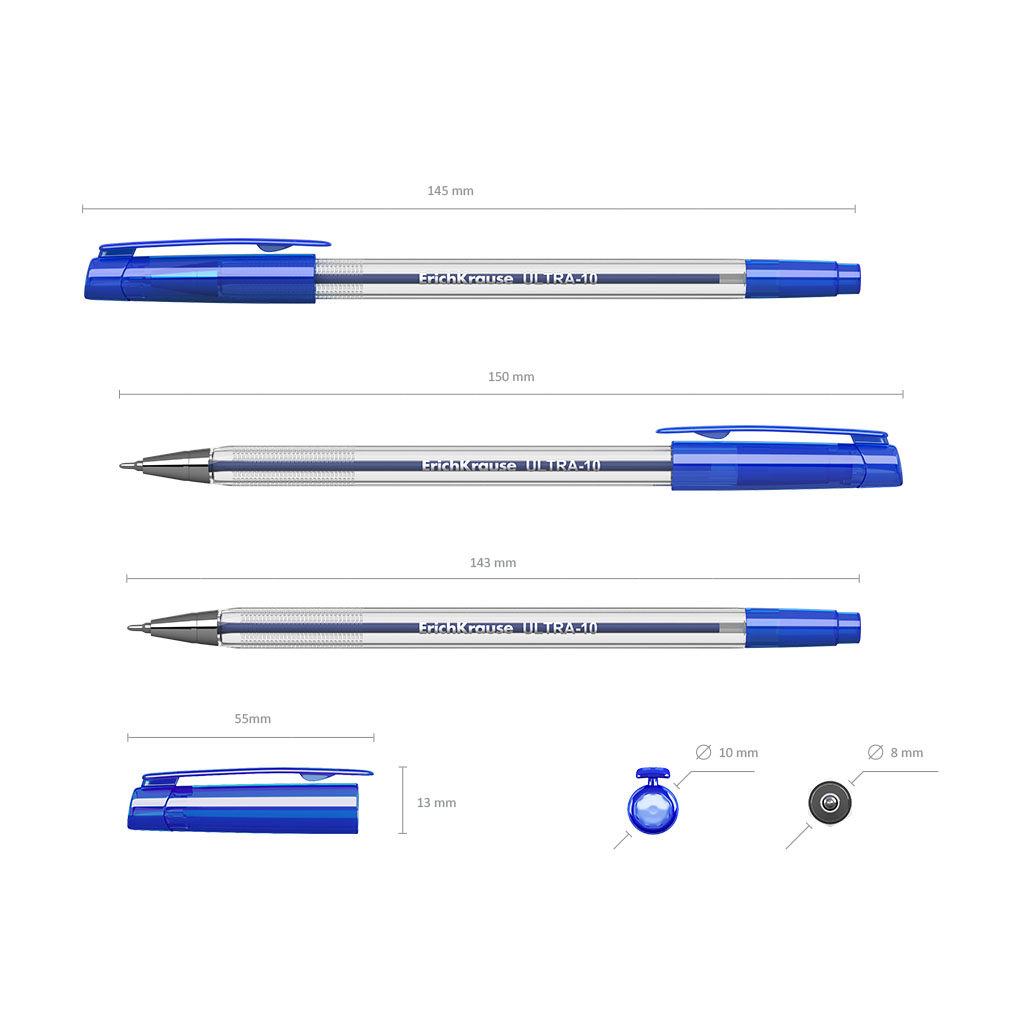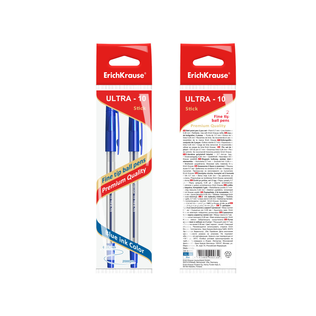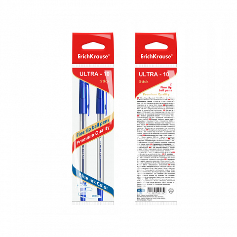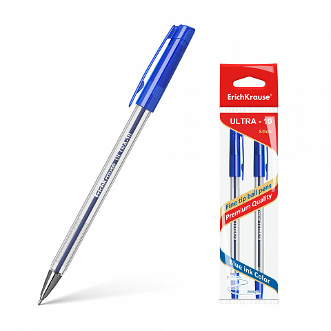 Ballpoint pen ErichKrause® ULTRA-10, ink color: blue (polybag 2 pcs.) |