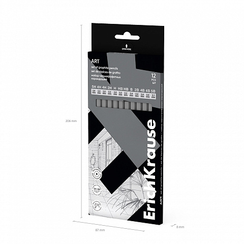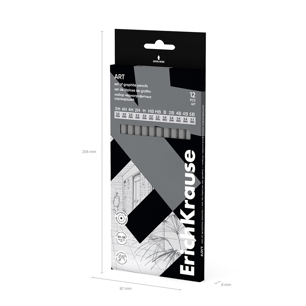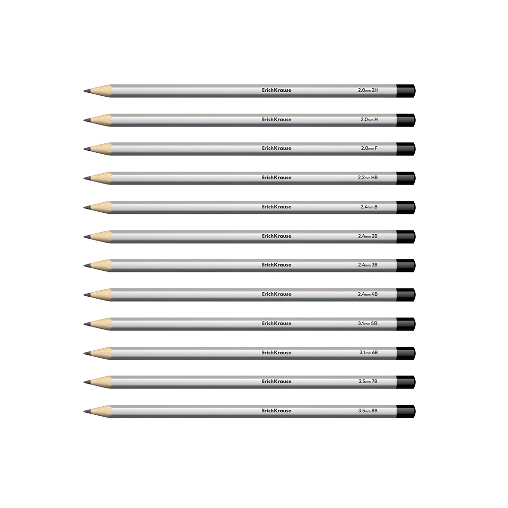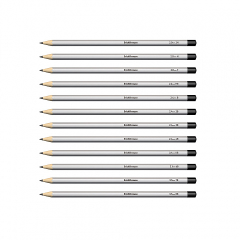 Set of 12 graphite pencils ErichKrause Art, hexagonal, 2Н, Н, F, HB, В, 2В, 3В, 4В, 5В, 6В, 7В, 8В (in box)