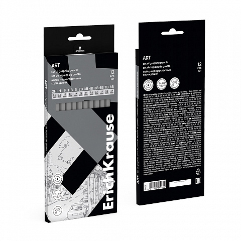 Set of 12 graphite pencils ErichKrause Art, hexagonal, 2Н, Н, F, HB, В, 2В, 3В, 4В, 5В, 6В, 7В, 8В (in box) |