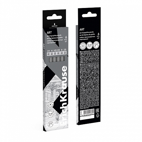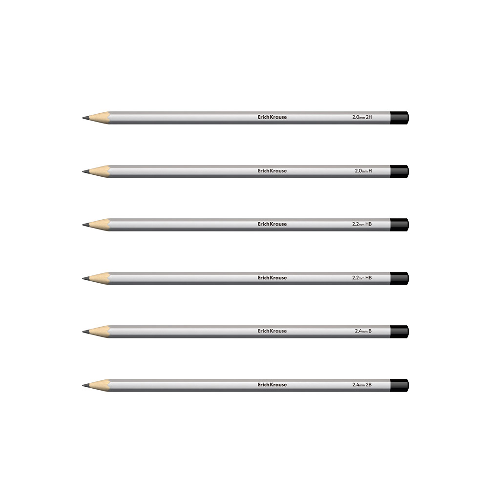 Set of 6 graphite pencils ErichKrause Art, hexagonal, 2H,H,HB,B,2B,4B (in box) |