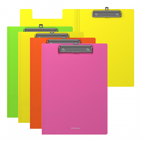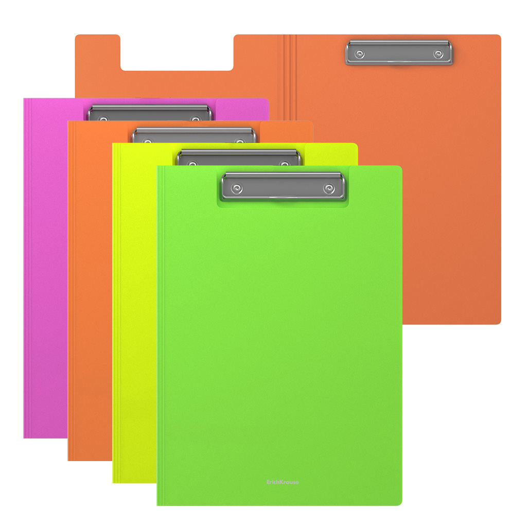 Clip folder ErichKrause® Matt Neon, A4, assorted colors (4 pcs in a bag)
