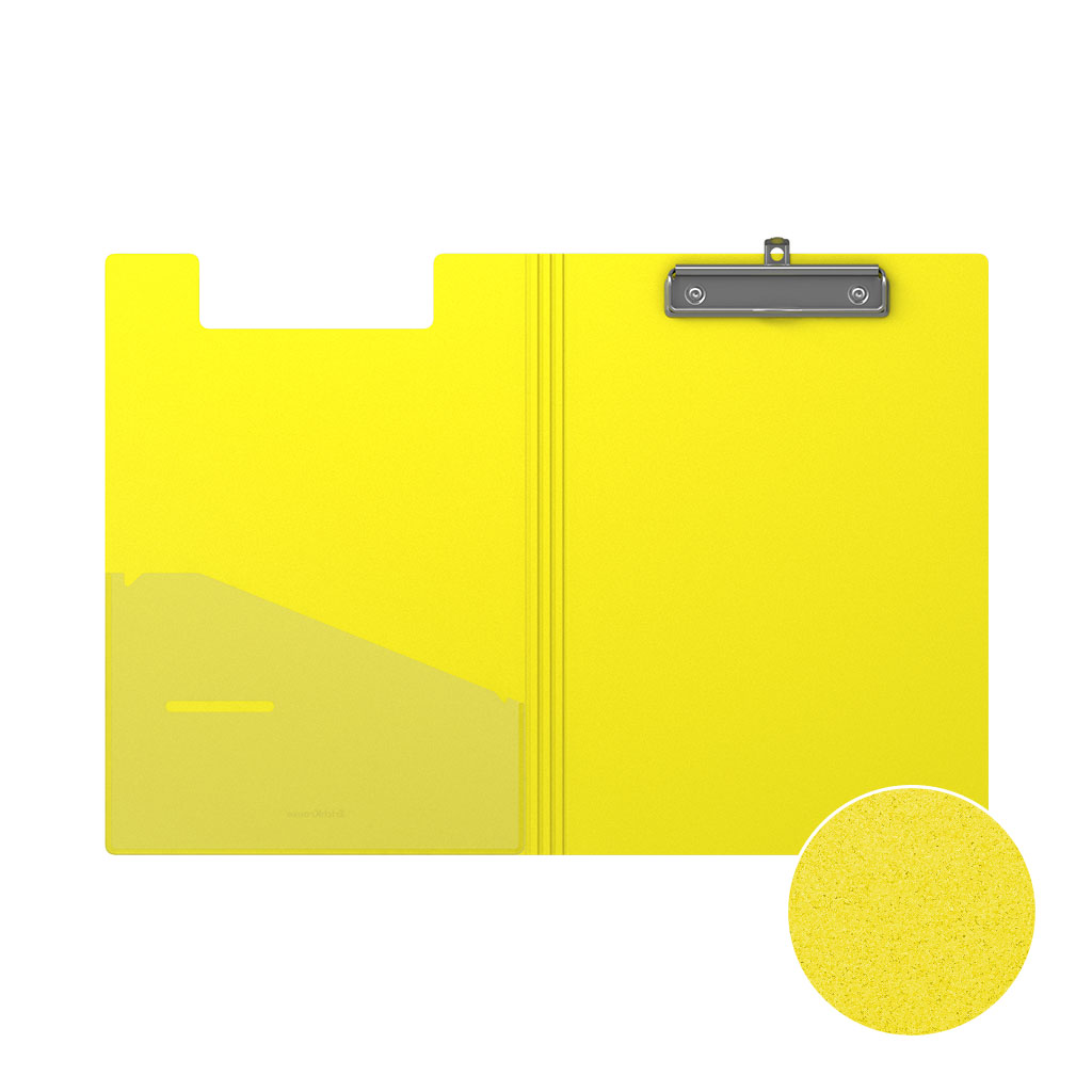 Clip folder A4 is made of high-quality plastic with reliable clip and surface texture "sand", on which fingerprints and small scratches are not visible. Assorted colors - yellow, green, orange, pink. It holds up to 80 paper sheets. Size - 227x320x15 mm, thickness - 1.3 mm. Individual barcode. |