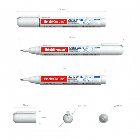 Correction pen with quick-drying correction fluid for precise corrections. Great result with ink of any type and color. Its special pumping system provides even continuous application without squeezing the body of the pen. High-quality metal tip provides economical consumption and smooth glide. Great for applying locally on smaller fragments. Leaves an opaque layer that won't be noticeable on photocopies. Frost-resistant. Solvent-based. Before application, shake the fluid well, so that the metalic ball inside the bottle stirs it evenly. |
