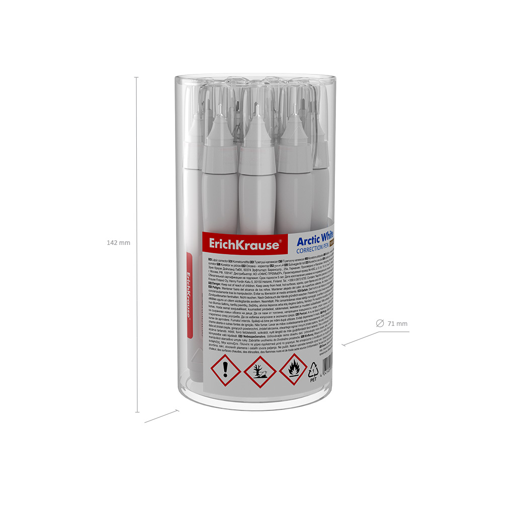 Correction pen with quick-drying correction fluid for precise corrections. Great result with ink of any type and color. High-quality metal tip provides economical consumption and smooth glide. Great for applying locally on smaller fragments. Leaves an opaque layer that won't be noticeable on photocopies. Frost-resistant. Solvent-based. Before application, shake the fluid well, so that the metallic ball inside the bottle stirs it evenly. |