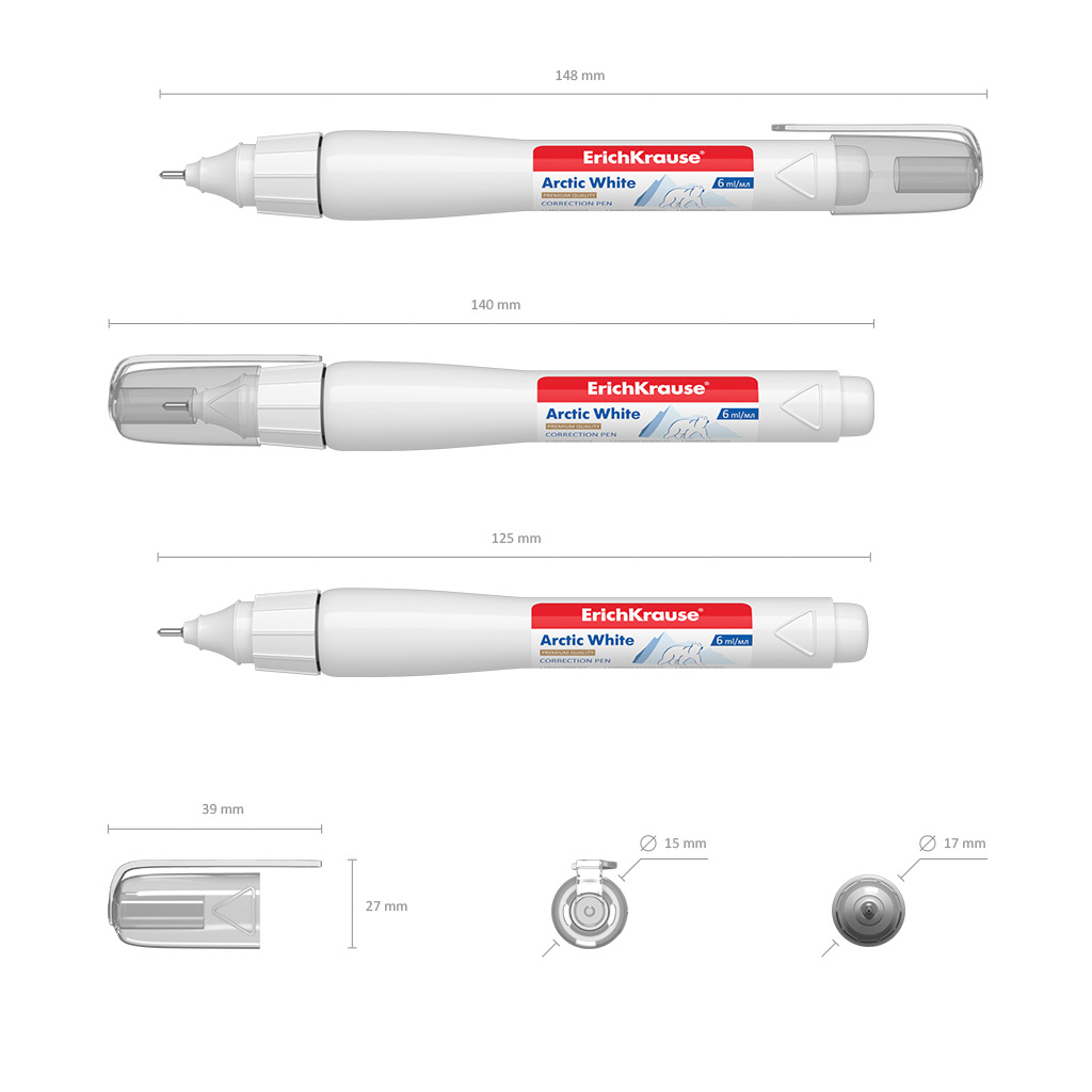 Correction pen ErichKrause Arctic white, 6 ml (drum box 12 pcs) |