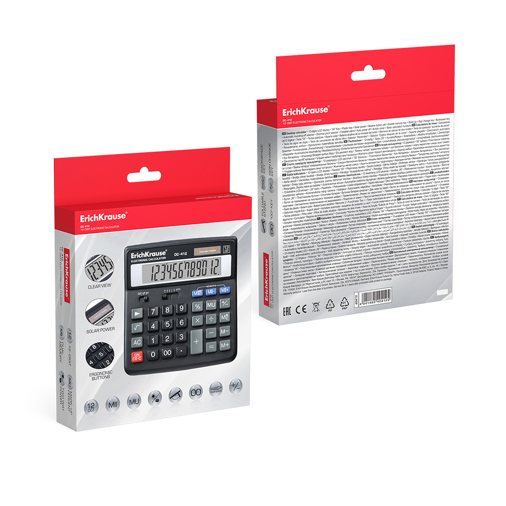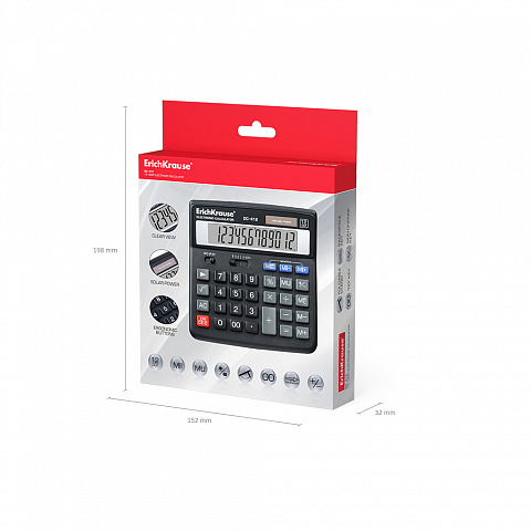 Desk electronic calculator 12-Digit ErichKrause DC-412 Classic, black (box 1 pc.) |