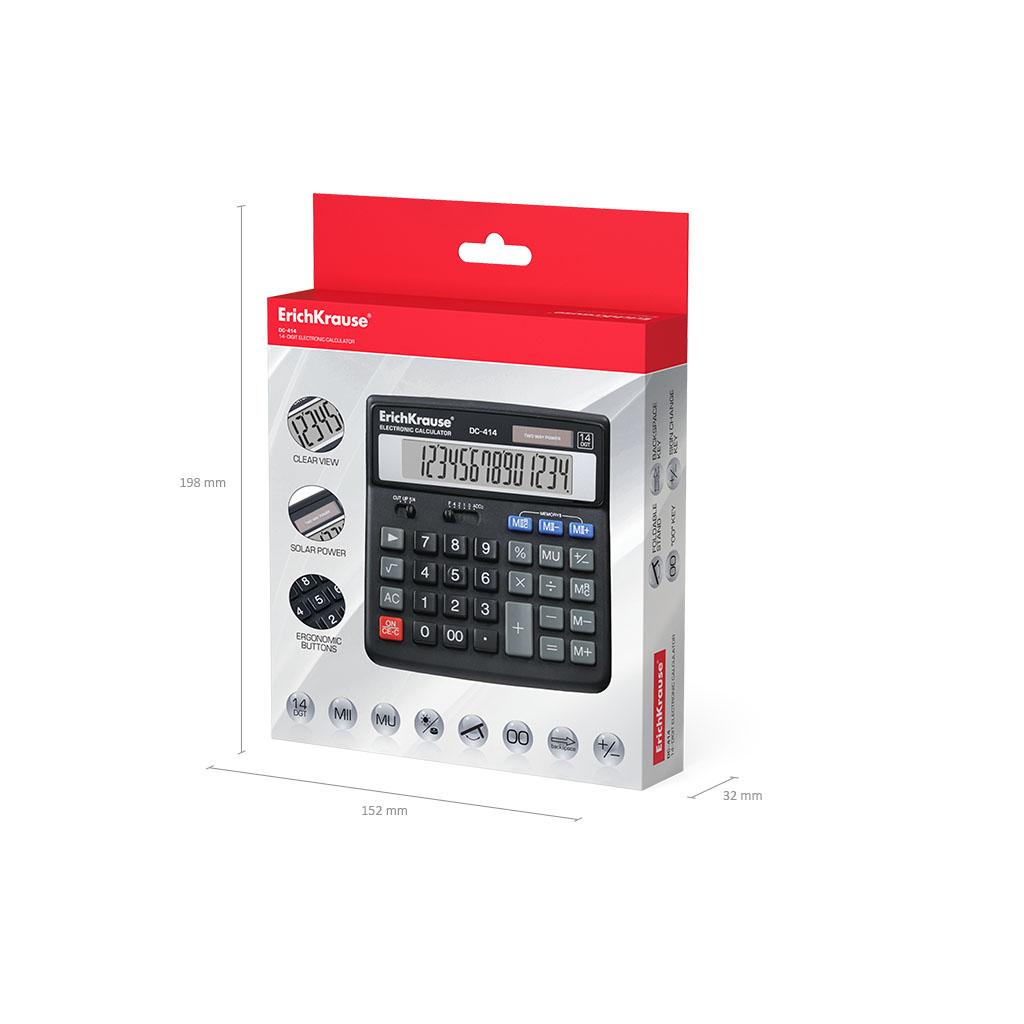 Desk electronic calculator 14-Digit ErichKrause DC-414 Classic, black (box 1 pc.)