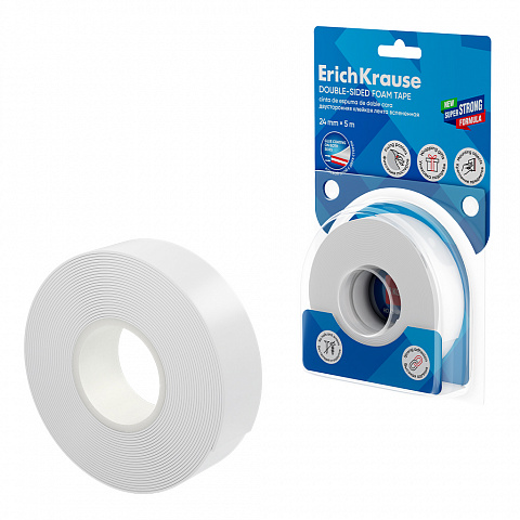 Double-sided foam tape ErichKrause 1mmx24mmx5m, white (blister 1 pc) |