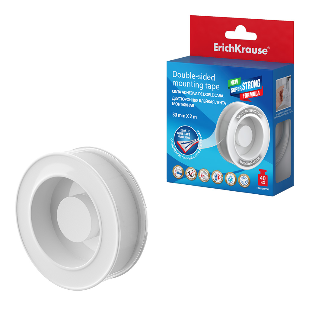 Double-sided tape. High adhesion. Fast and durable gluing of objects to various types of surfaces: glass, tile, wood, plastic, metal, concrete, brick, marble. Holds up to*: 40kg/m. Reusable. Washable. Easy to remove from surface without damage or trace. Weatherproof. Suitable for outdoor and indoor use. *The adhesive force depends on texture of object, materials, surface and its quality preparation, uniform distribution of the load. After repeated use, the adhesive force decreases. |
