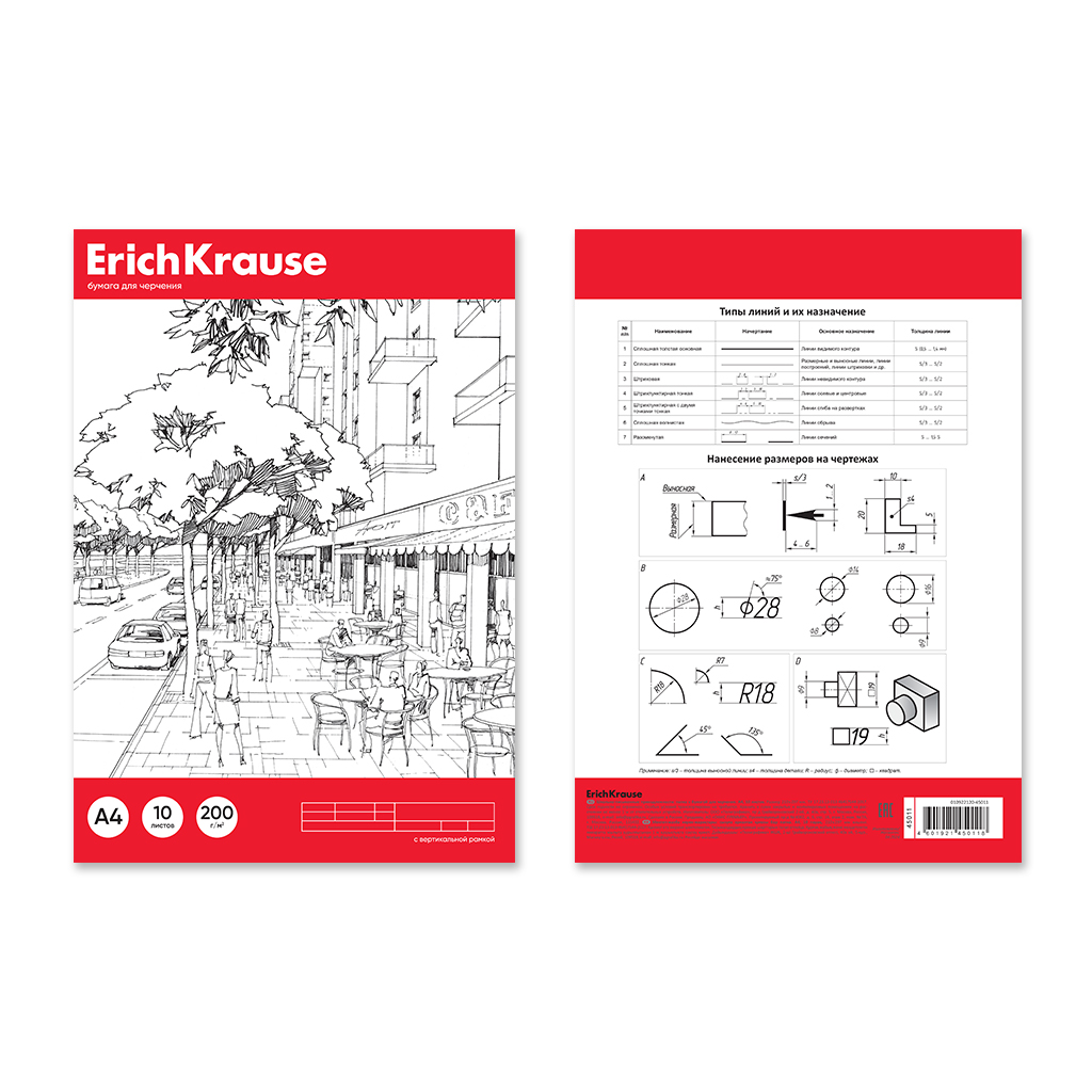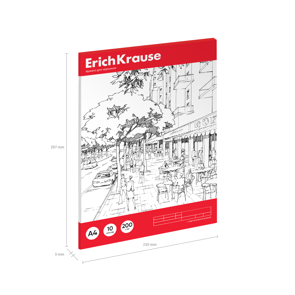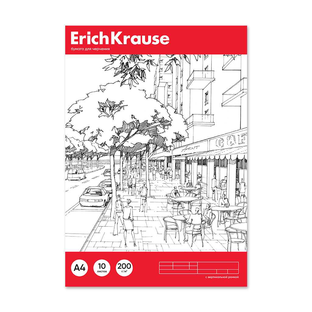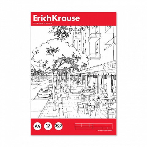 Paper for drawing ErichKrause, A4, 10 sheets (vertical frame + small stamp)