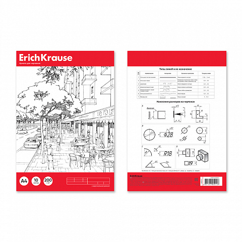 Paper for drawing ErichKrause, A4, 10 sheets (vertical frame + small stamp) |