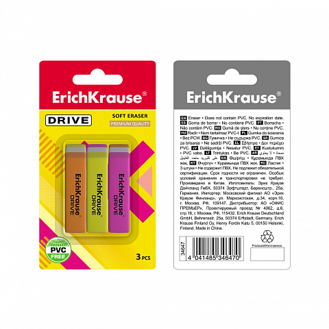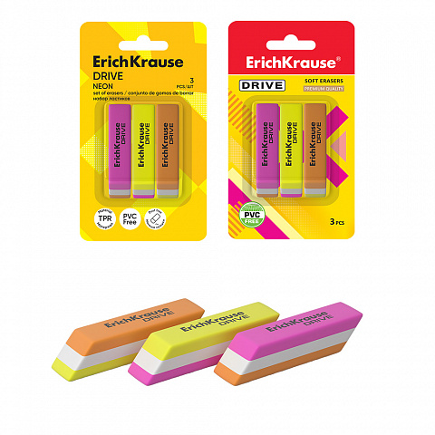 Set of 3 erasers ErichKrause Drive Neon (in blister) |