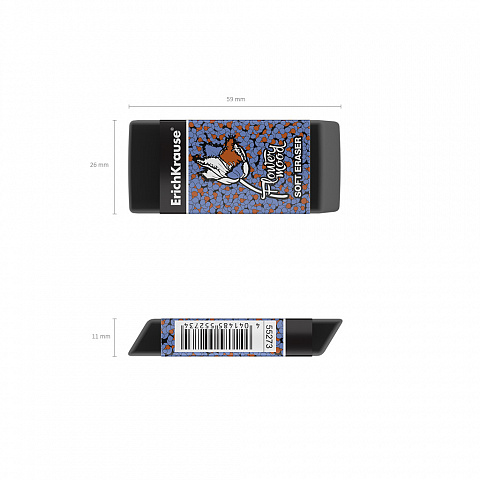 A soft eraser of classical shape made of modern, eco-friendly and hypoallergenic thermoplastic rubber (TPR) with lowered waste (Dust free). Packed in the original cardboard wrapper. The eraser’s chemical composition does not contain PVC. Size 60 х 25 х 10 mm. |