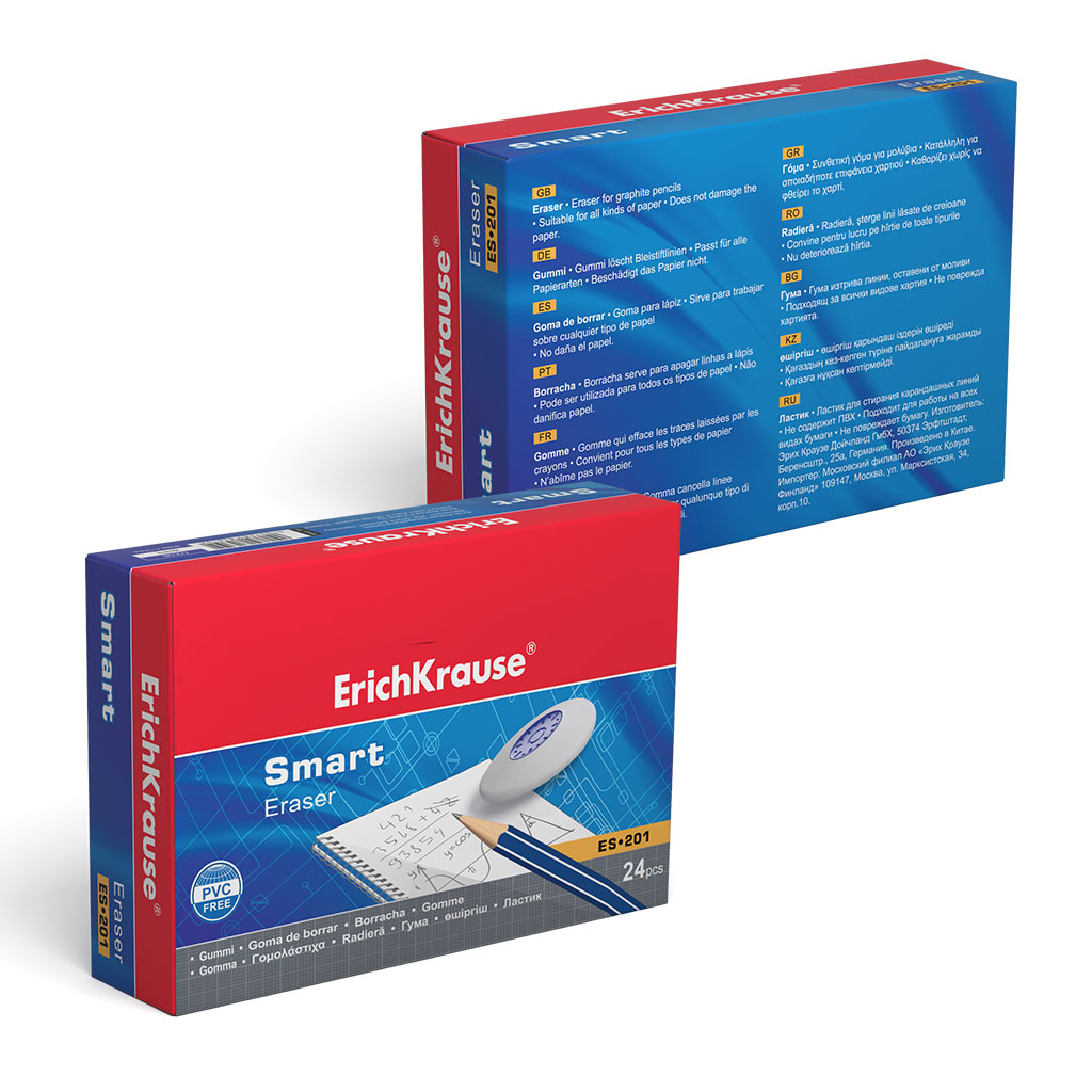 Eraser of medium hardness and classical form. Produced from modern, eco-friendly and hypoallergenic thermoplastic rubber (TPR). Dust free. Does not contain PVC. |