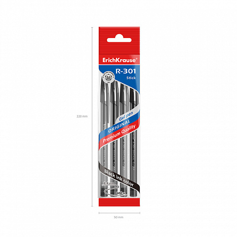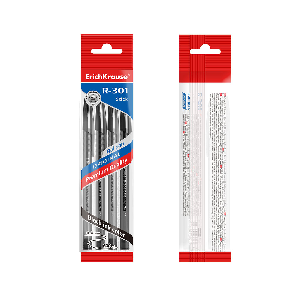 Gel ink pen ErichKrause R-301 Gel Stick Original 0.5, ink color: black (polybag 4 pcs.) |