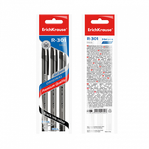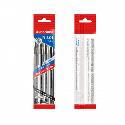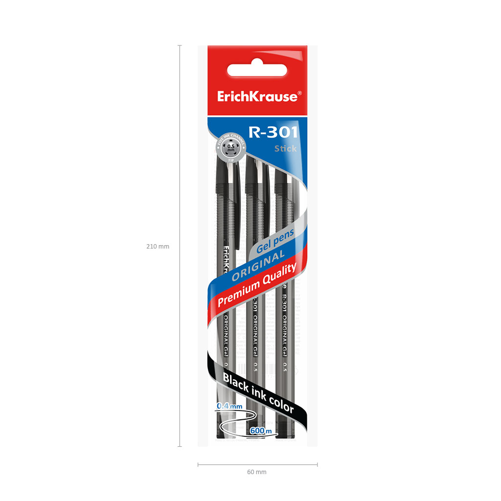 Gel ink pen ErichKrause® R-301 Original Gel 0.5, ink color: black (polybag 3 pcs.) |