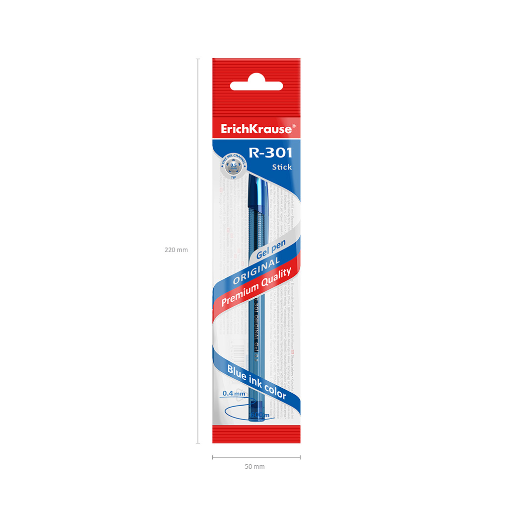 Gel ink pen ErichKrause® R-301 Original Gel 0.5, ink color: blue (polybag 1 pc.) |