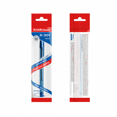 Gel ink pen ErichKrause R-301 Gel Stick Original 0.5, ink color: blue (polybag 4 pcs.) |