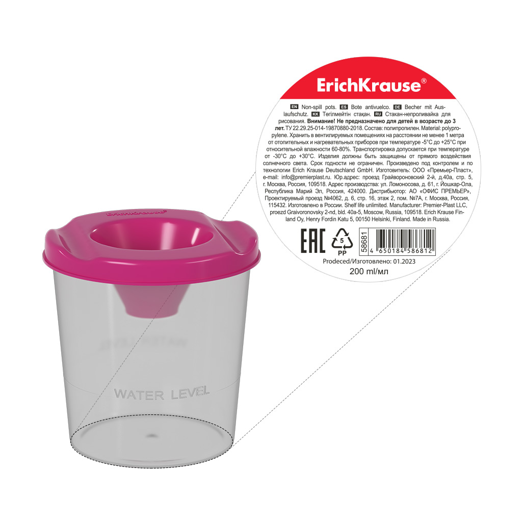 Non-spill pots ErichKrause® - so useful for all painting projects. Set of non-spill pots have a special lid that keeps water inside-even if it topples over, it will prevent mess and damage to furniture. The plastic, easy grip lid makes the pots easy to open and close. Useful 80mm high, full volume 200ml, non-spill volume 64ml. |