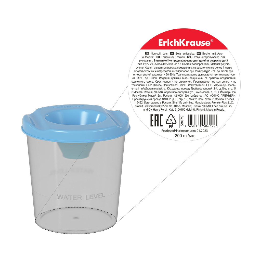 Non-spill pots ErichKrause® - so useful for all painting projects. Set of non-spill pots have a special lid that keeps water inside-even if it topples over, it will prevent mess and damage to furniture. The plastic, easy grip lid makes the pots easy to open and close. Useful 80mm high, full volume 200ml, non-spill volume 64ml. |