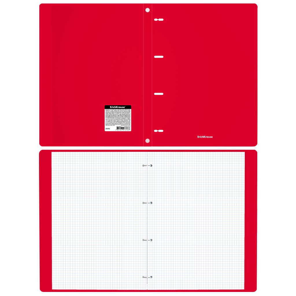 Ring binder notebook ErichKrause® Classic, red, А4, 80 sheets, squared, plastic cover |