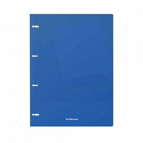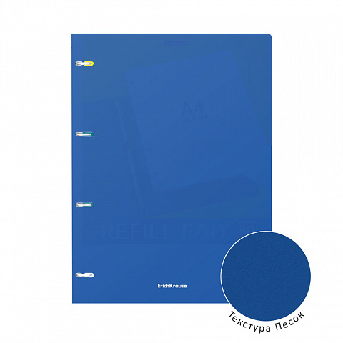 Notebook with size A4 (210x297 mm). Strong and durable matt polypropylene cover with texture «sand». 80 sheets per pad of quality paper 60 gsm. Paper ruling — dark blue squared. Cover has rounded corners for comfort and safety. Binding type — ring binders… |
