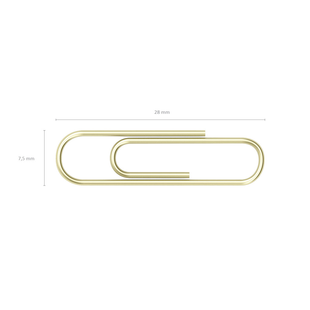 Brass plated paper clips made of high quality steel wire with improved strength characteristics. Suitable for multiple use. Corrosion-resistant. Non-smudging and non-scratching paper. |