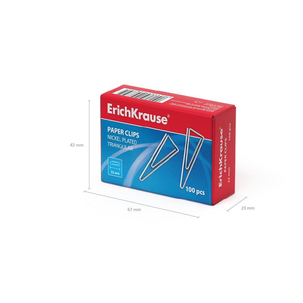 Paper clips nickel plated ErichKrause Triangular, 32mm (box 100 pcs) |
