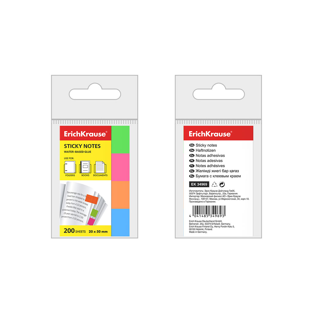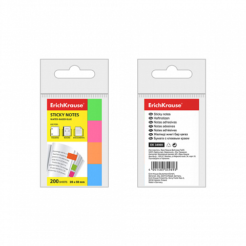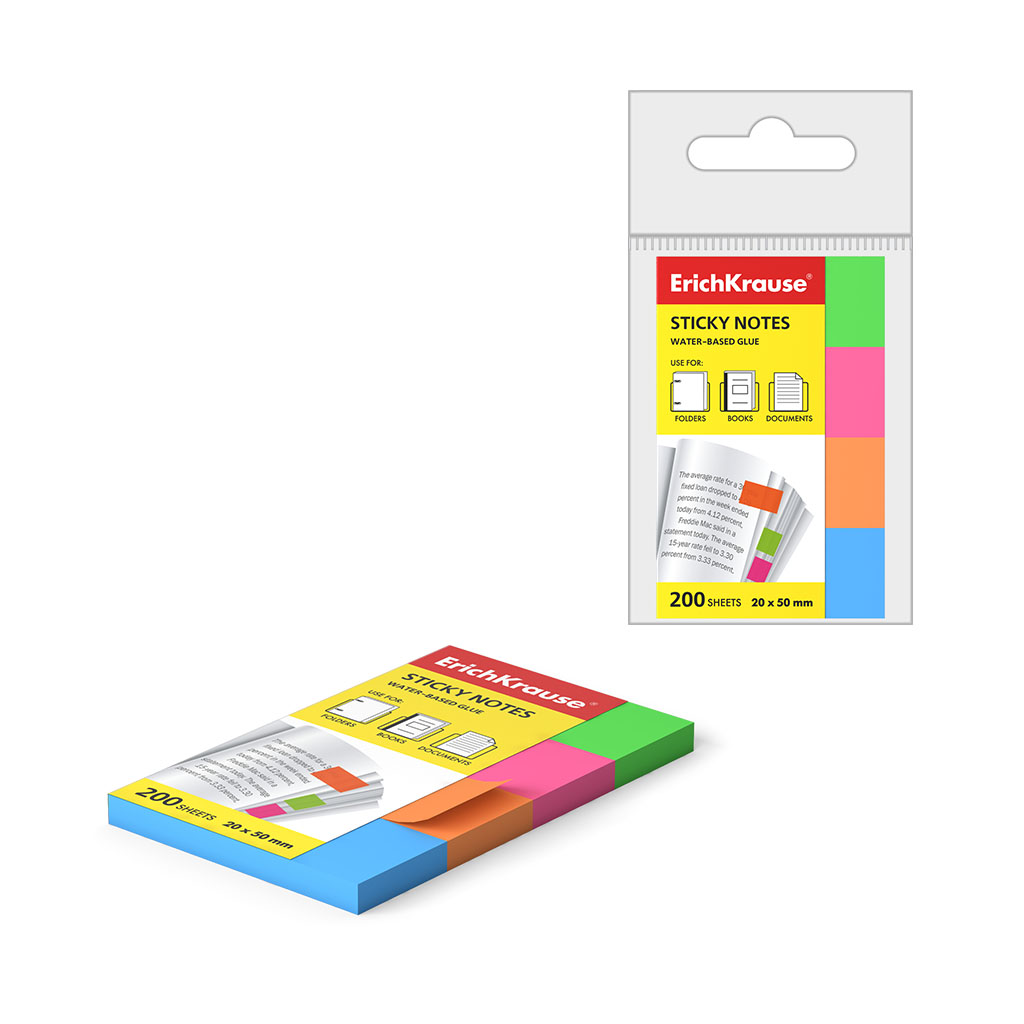 Page marker ErichKrause® Neon, 20х50 mm, 200 sheets, 4 colors |