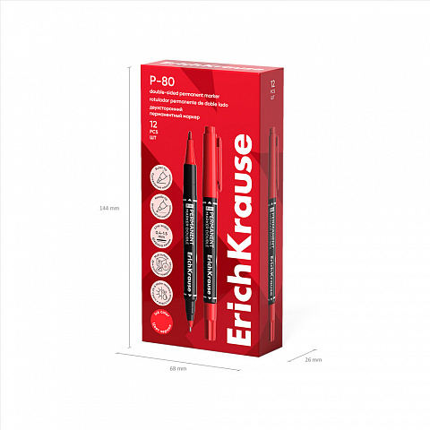 Double-sided permanent marker ErichKrause Double P-80, ink color: red (box 12 pcs.) |