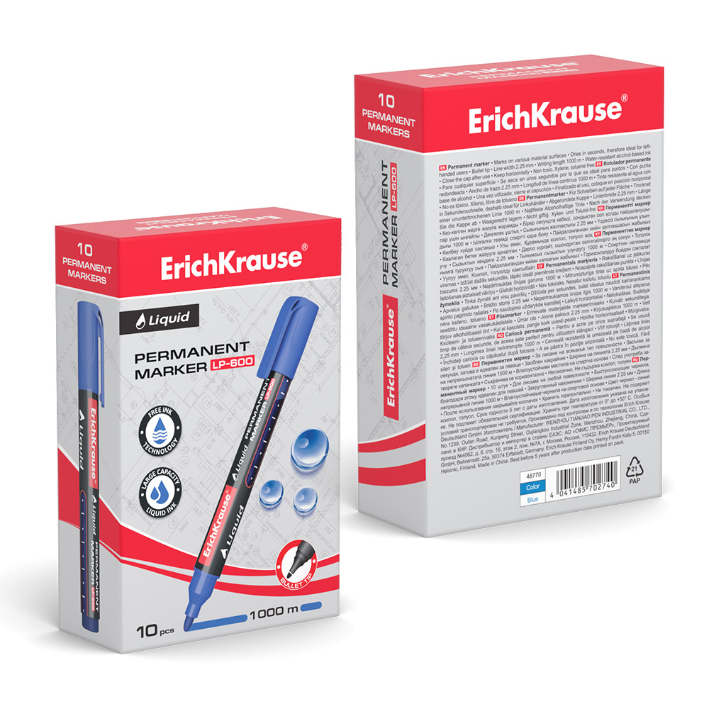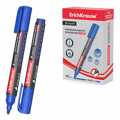 Permanent marker with liquid ink ErichKrause Liquid LP-600, ink color: blue (box 10 pcs.) |