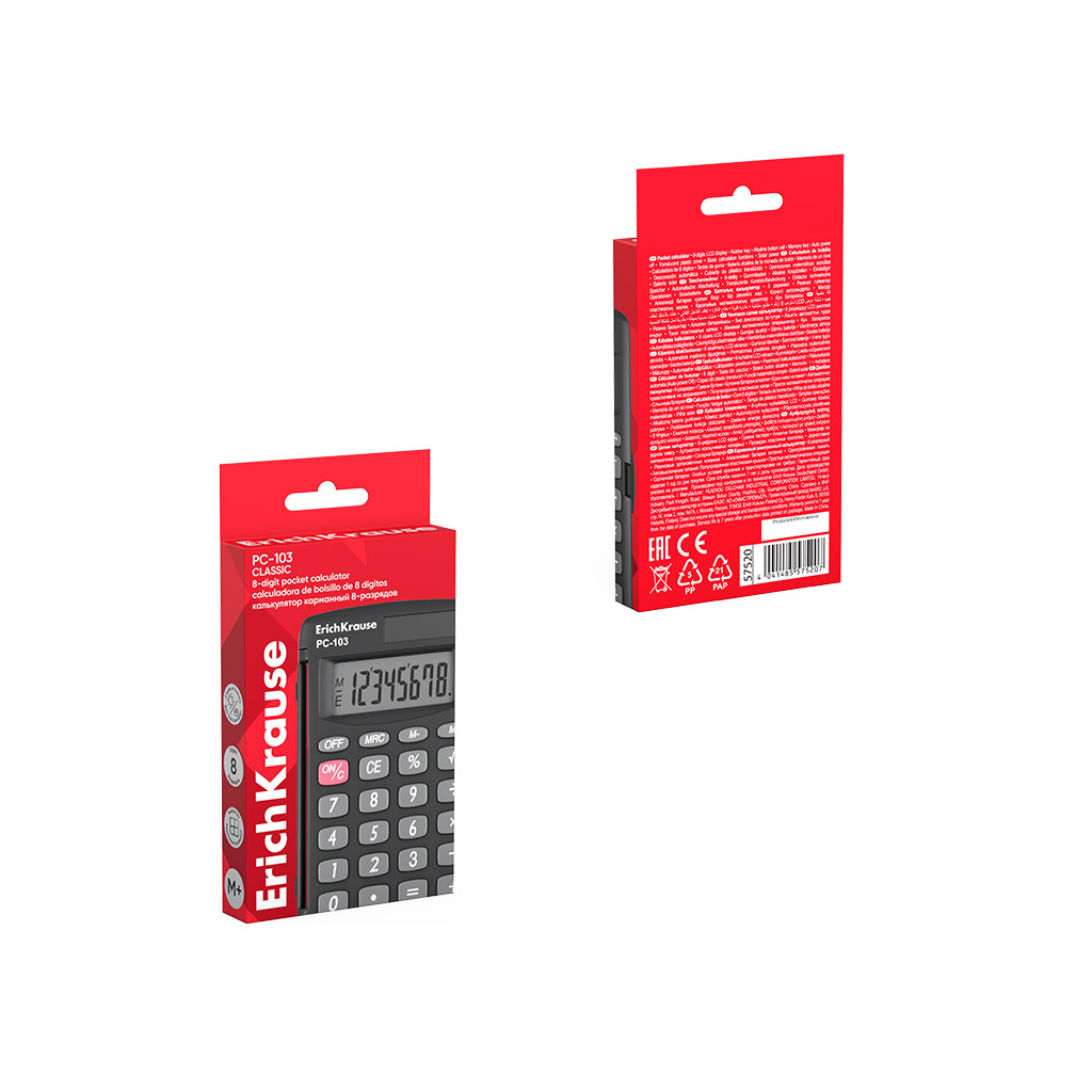 Pocket electronic calculator 8-Digit ErichKrause PC-103 Classic, black (box 1 pc.)