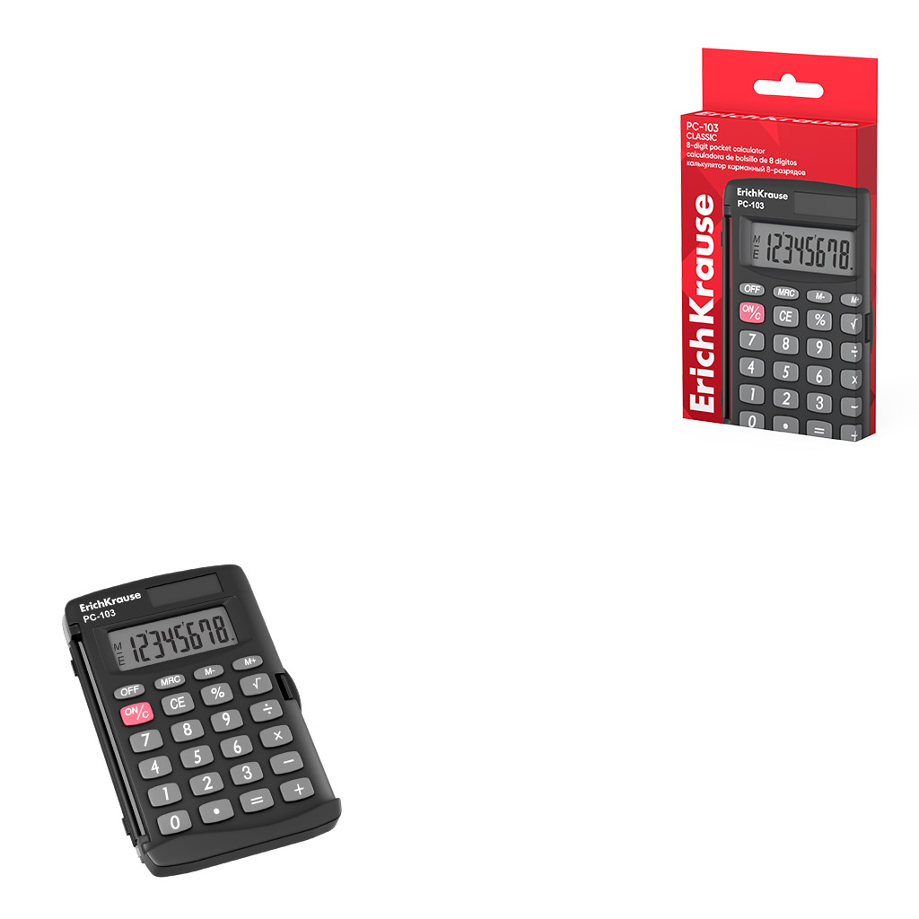 Pocket electronic calculator 8-Digit ErichKrause PC-103 Classic, black (box 1 pc.) |