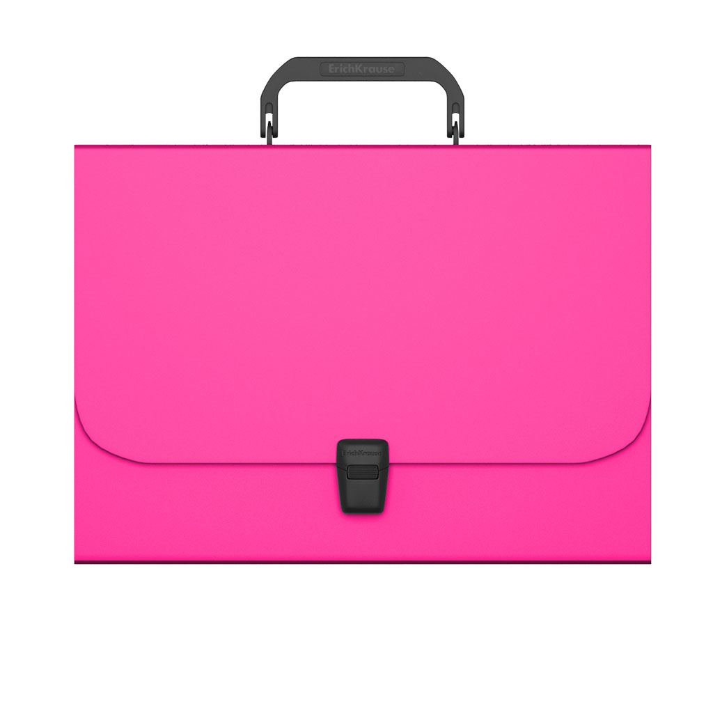 Portfolio folder A4 is made of high-quality plastic with a surface texture "sand", on which fingerprints and small scratches are not visible. Intended for transportation of documents. The portfolio folder color is pink. It holds up to 350 paper sheets. Equipped with branded lock and handle with logo ErichKrause®. Size - 335x230x35 mm, thickness - 0.7 mm. Individual barcode. |