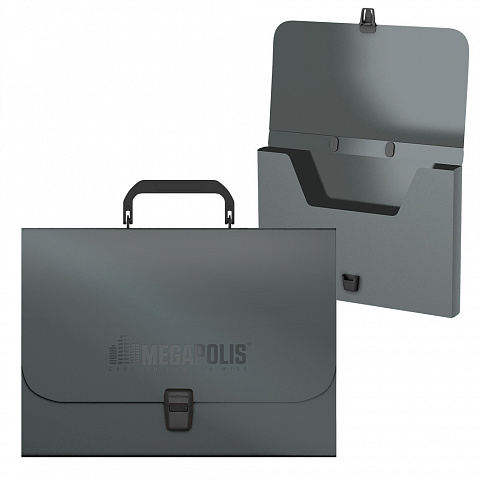 Portfolio folder FC is made of high-quality plastic with a surface texture "sand", on which fingerprints and small scratches are not visible. Intended for transportation of documents. The portfolio folder color is grey. Equipped with branded lock and handle with logo ErichKrause®. Size - 372x252x42 mm, thickness - 1 mm. Individual barcode. |